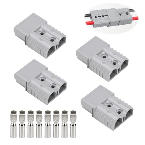 4 Pièces Connecteur Batterie 50A 600V Kit, Prise Connexion Rapide avec 8 Cosses Câble 6-10 AWG Cosses Cuivre Plaqué Argent Borne de Batterie pour Voiture Camping-Car Caravane Treuil Panneau Solaire