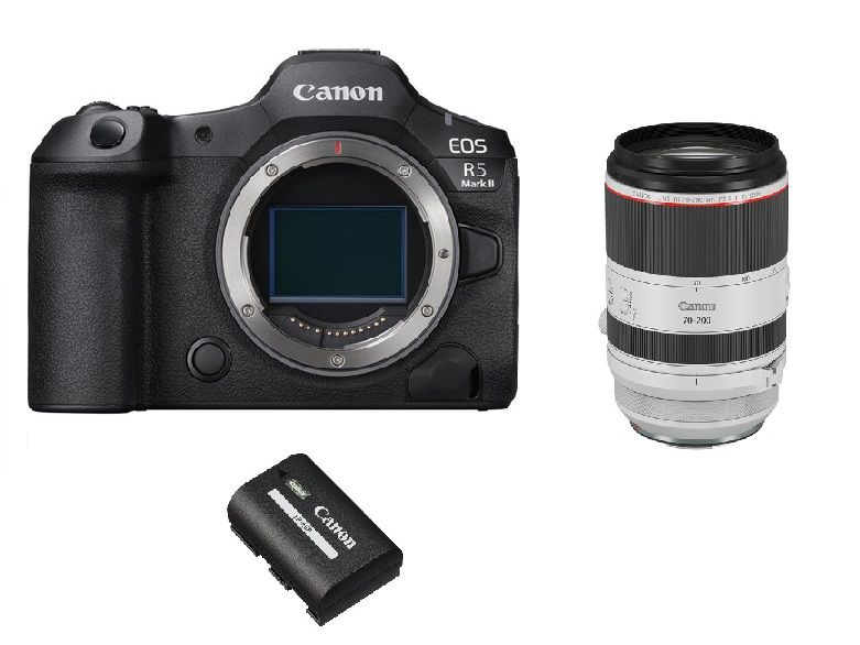 Canon EOS R5 II Boîtier+ objectif Canon RF 70-200 mm f/2.8 L IS USM + Canon LP-E6P batterie