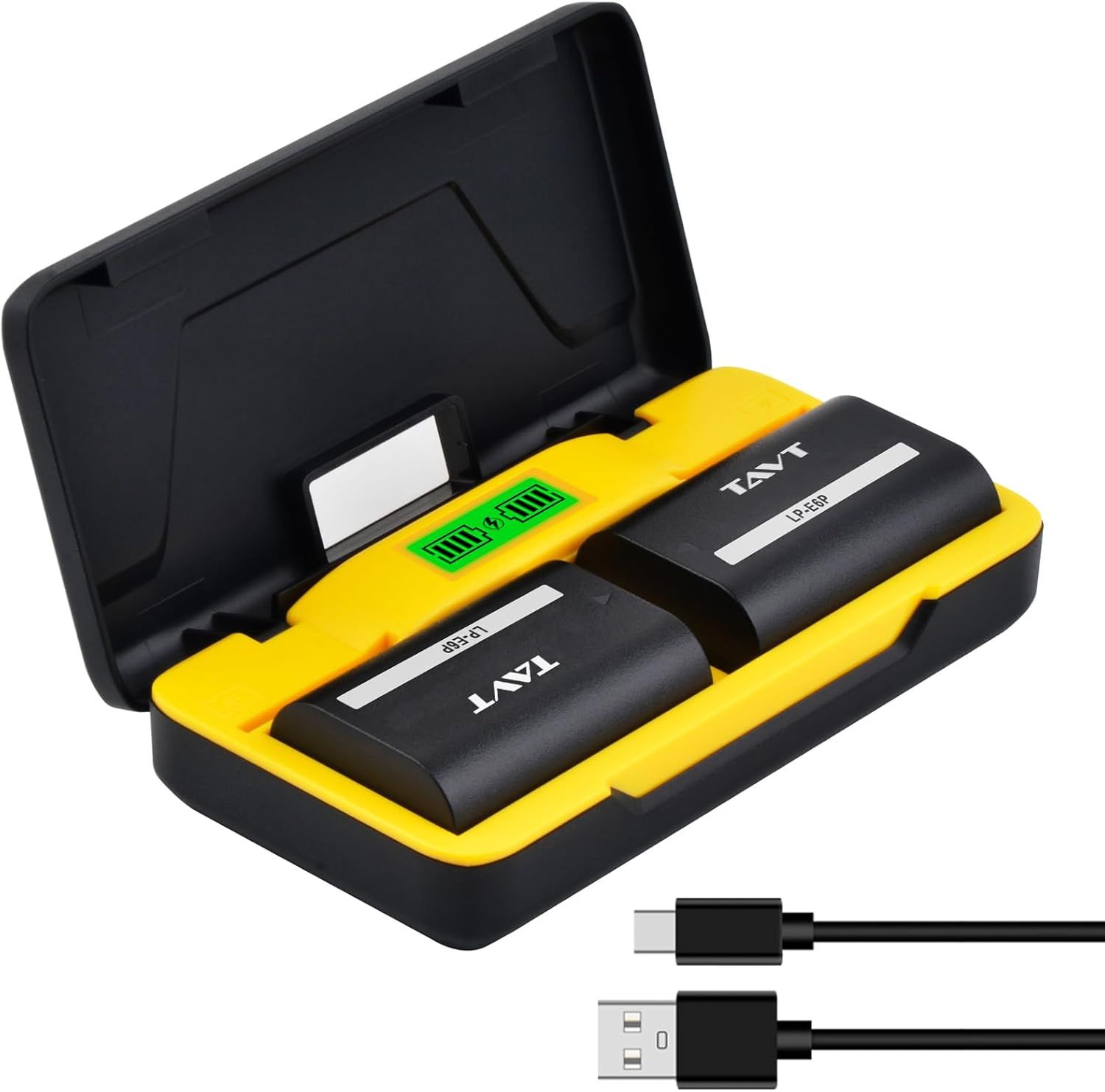 Baxxtar 2X LP-E6 Batterie 2250mAh avec Chargeur Dual (LCD USB-C Micro-USB) Compatible avec Canon EOS 5D Mark II III IV 5DS R R5 6D 7D 60D 60Da 70D 80D 90D XC10 XC15 XC 10 15 WFT-E5 E7 LPE6 LP E6
