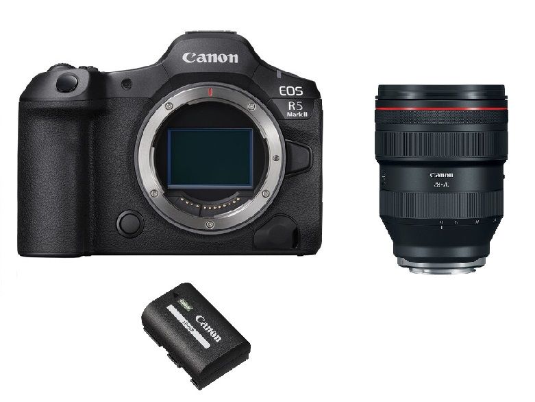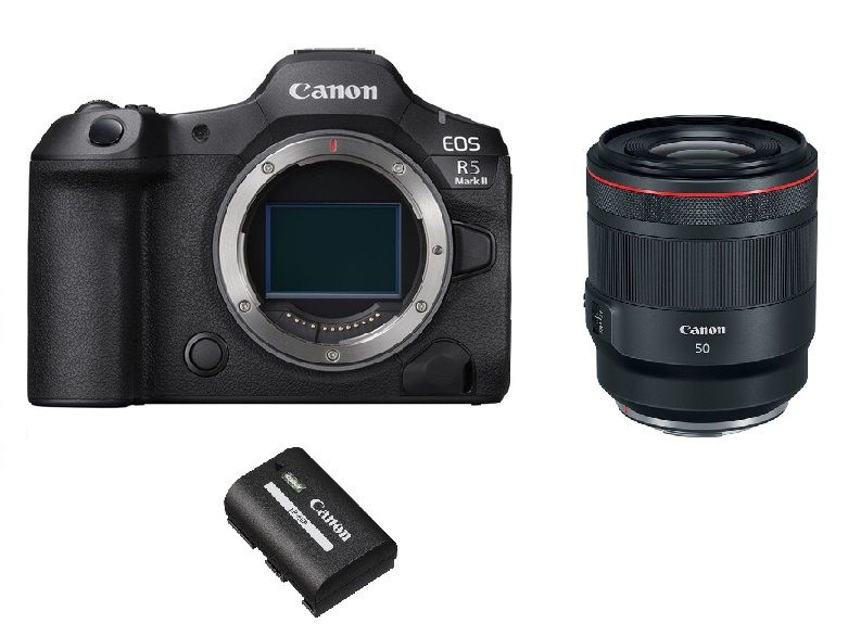 Canon EOS R5 II Boîtier + objectif Canon RF 50 mm f/1.2L USM + Canon LP-E6P batterie