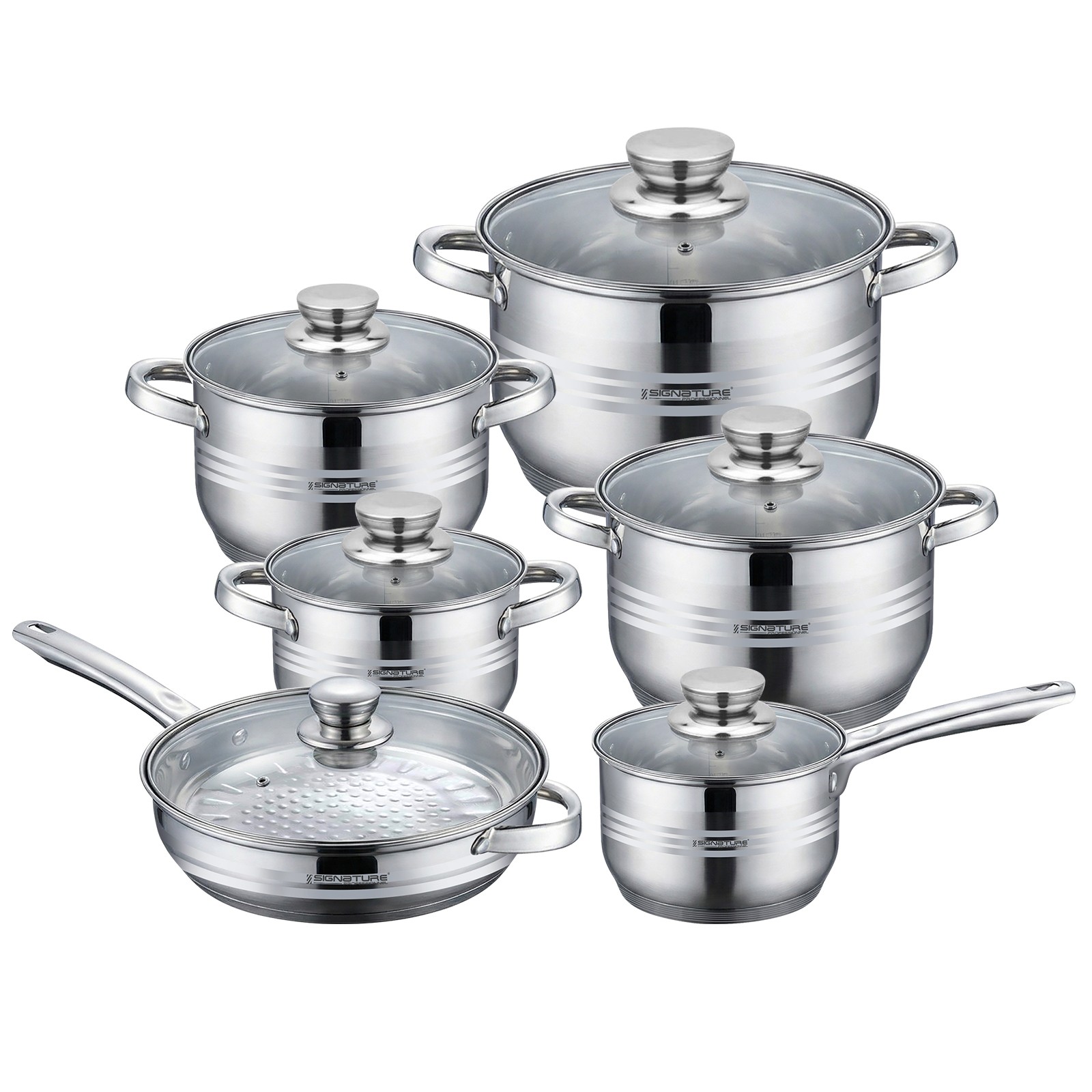 Batterie de cuisine 6 pièces inox 16-18-20-24cm avec casserole et sauteuse signature argent KITSIG-CS12