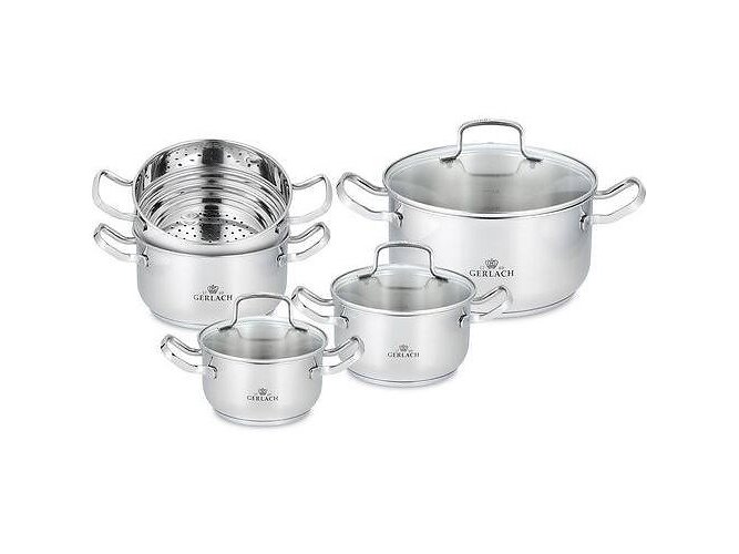 WOLL - Steel Batterie de casseroles 10 pièces Ø 20-24 cm - Casseroles à induction en acier inoxydable, passent au lave-vaisselle, économes en énergie et durables - Casserole - Set de casseroles