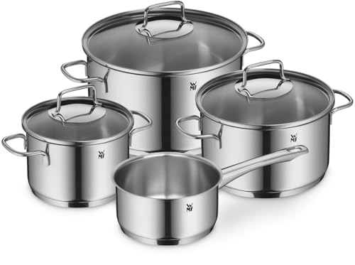 WMF Astoria Batterie de cuisine 4 pièces, casseroles hautes avec couvercles (16/24 cm), marmite basse avec couvercle (20 cm), casserole (16 cm), Cromargan acier inoxydable poli, convient pour