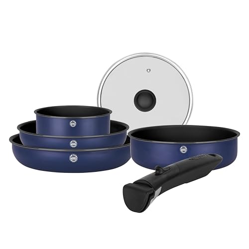Sitram 716978 Batterie de Cuisine en Aluminium recyclé bleu 6 pcs : 1 manche amovible, 1 casserole Ø18cm, 2 Poêles Ø22,26cm,1 Sauteuse Ø24cm, 1 couvercle - Tous feux dont induction