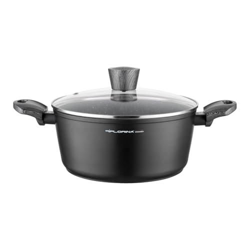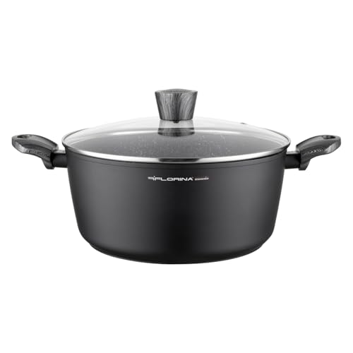 FLORINA - Casserole en Aluminium (6,1 l) I Casserole Induction BONO I 28 cm Diamètre I Marmite pour Induction, Gaz, Electrique I Batterie de Cuisine I Revêtement Antiadhésif I Couleur: Noir