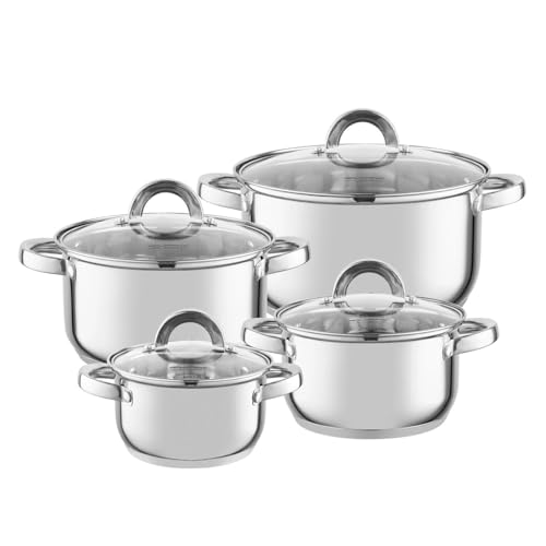 FLORINA - Casseroles (Lot de 8) I Casserole Inox CLAUDE I Pour Induction, Gaz I Set avec Couvercle en Verre I Batterie de Cuisine I Acier Inoxydable I Couleur: Argent