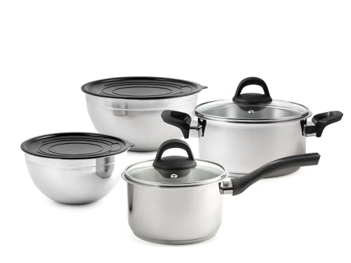 H&H, Batterie de casseroles 8 pièces avant en acier inoxydable 18/10, triple fond pour tous les plans de cuisson, y compris induction, avec bol et couvercles