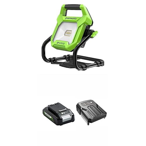 Greenworks G24WL Lampe de Travail Sans Fil 2000 Lumen + Batterie 24V 2Ah et Chargeur Universel