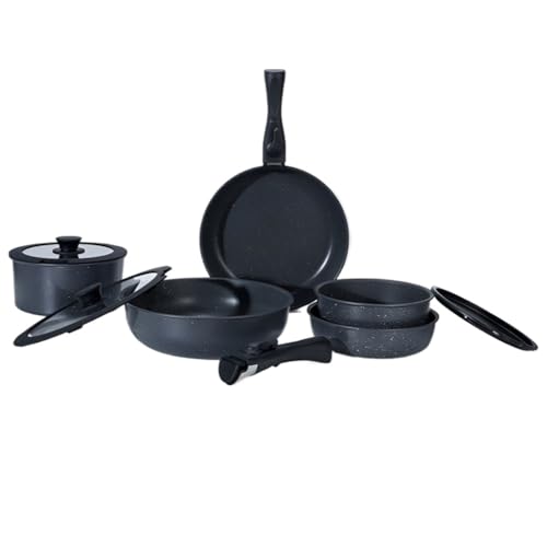 IEEDFJKK Batterie de cuisine amovible, remplacement de la poêle à frire, poignée amovible et poignées uniques, noir