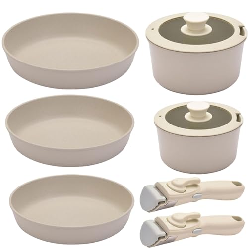 IEEDFJKK Batterie de cuisine amovible, remplacement de la poêle à frire, poignée amovible et poignées uniques, beige