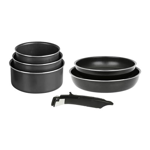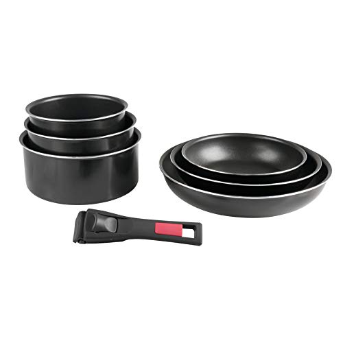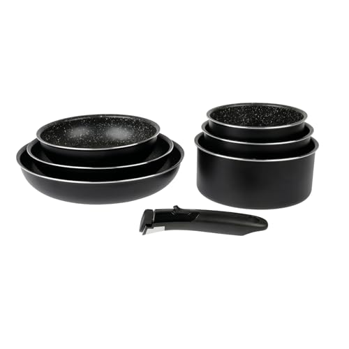 Sitram 712382, Batterie de cuisine 7 pièces : 3 casseroles + 3 poêles + 1 poignée amovible - Aluminium pressé - Tous feux dont induction, Noir