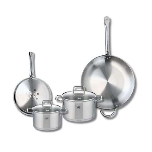 ELO 9505850 Batterie de cuisine 4 pièces, Ensemble de 2 Poêles de cuisson 24 et 32 cm et 2 faitouts 16 et 20 cm Elo Profi Citrin, inox, induction