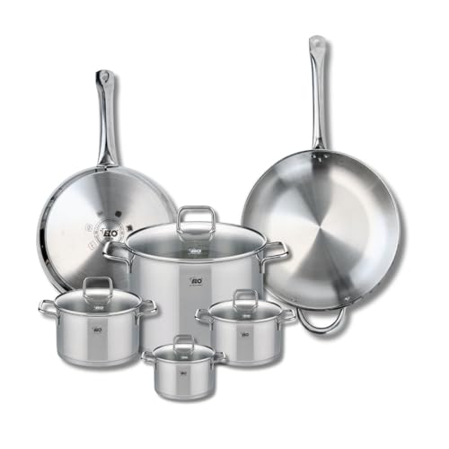 ELO 9506950 Batterie de cuisine 5 pièces, Ensemble de 2 Poêles de cuisson 24 et 32 cm et 3 faitouts 14, 20 et 26 cm Elo Profi Citrin, inox, induction