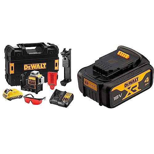DeWalt - Laser Multilignes 3x360° 12V Li-Ion 2Ah - Niveau Laser Autonivelant 4° sans Fil avec Faisceaux Rouges & Batterie XR 18V 4 Ah Li-Ion - DCB182-XJ - Compatible Avec Tous Les Outils XR 18V