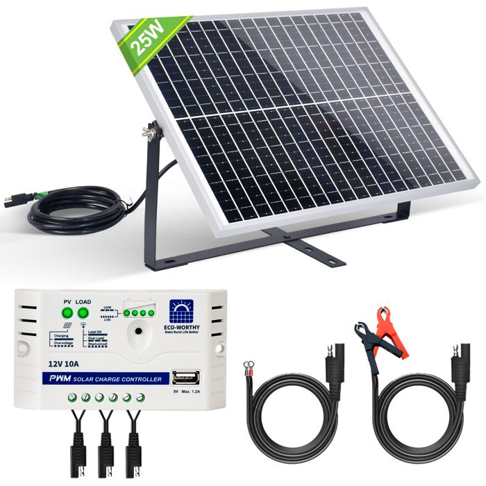 ECO-WORTHY kit de Panneau Solaire 25W 12V Mono Panneau Solaire PV 25W avec contrôleur 10A pour Voiture RV Accueil Batterie Charge