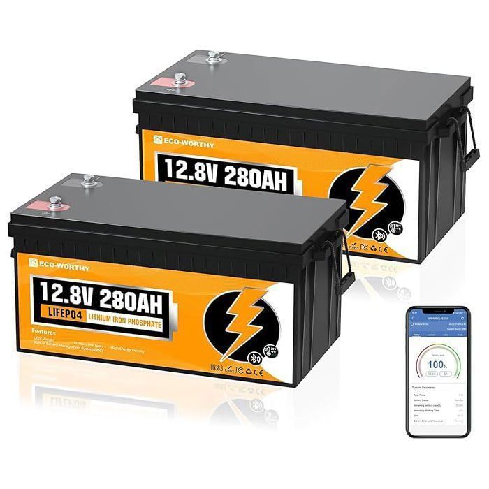 ECO-WORTHY Batterie lithium Bluetooth 12V 280Ah x 2 Batterie Lifepo4- 7168WH - 6000+ cycles -200A BMS pour Camping Car