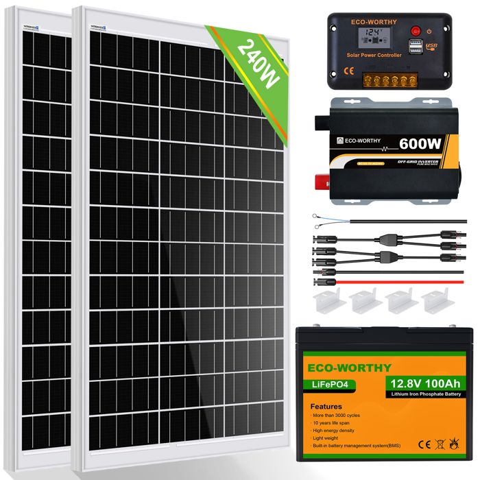 ECO-WORTHY 240W 12V Kit Solaire Complet Avec Batterie 096KW/Jour Système de Panneau Solaire Pour Camping-car Van Bateaux