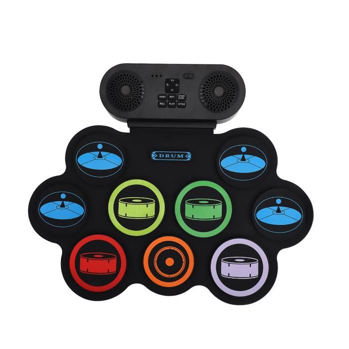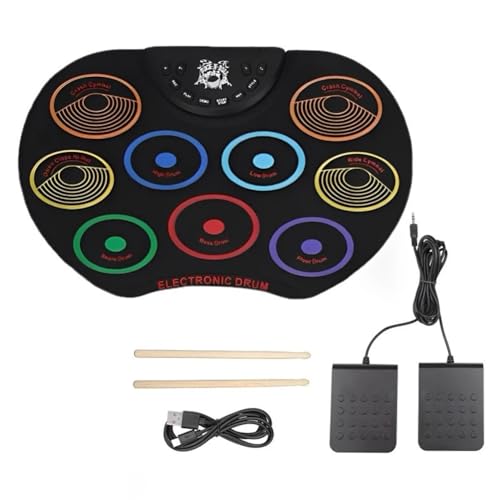 Batterie Electronique Enfant, Ensemble de Batterie Enroulable, 9 Pads, Kit de Batterie avec Pédales et Baguettes de Batterie, Double Haut-parleur intégré, Idéal