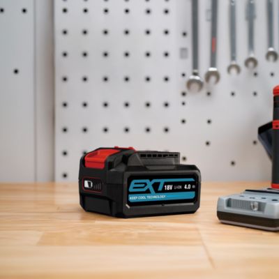 Evolution Power Tools, Bloc batterie lithium ion, Protection contre les surtensions et les sous-tensions, Témoin de charge de la batterie, Connecteur compatible Erbauer EXT, Grandes, 5 Ah, 18 V