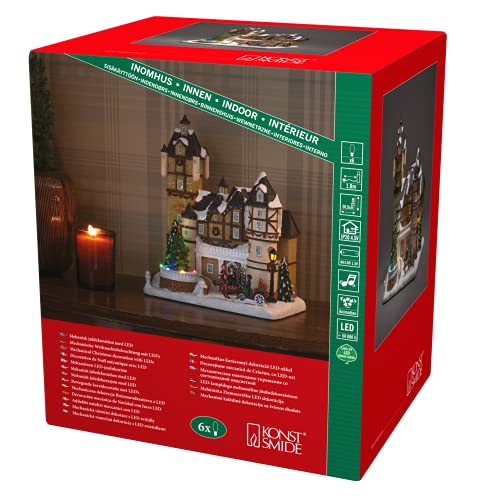 Konstsmide Maison à fibre optique LED avec scène de bourgeon et arbre de Noël rotatif, avec musique, 6 diodes multicolores, transformateur intérieur 4,5 V / fonctionnement à piles, intérieur 0,3 W, câble noir, batterie : 3 x AA 1,5 V (non incluse).