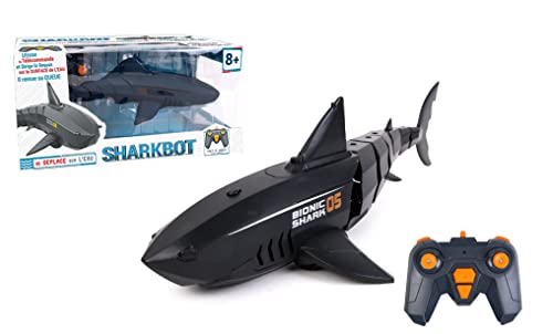 TURBO CHALLENGE - Requin - Sharkbot - 094870 - Animal Télécommandé - Noir - 1/6 - Prêt à Nager - Batterie Rechargeable et Piles incluses - Plastique - À Partir de 8 Ans