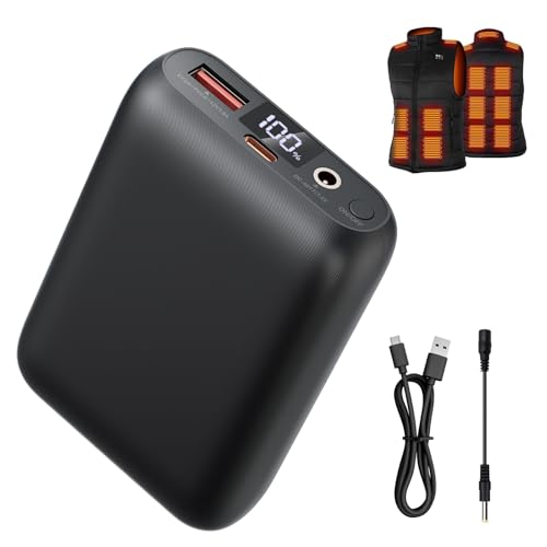 BIAL Batterie Veste Chauffante, 16000mAh Batterie pour Gilet Chauffant à Charge Rapide avec écran LED et Sortie DC 7,4V, Portable Batterie Externe pour Veste Chauffante avec Port USB