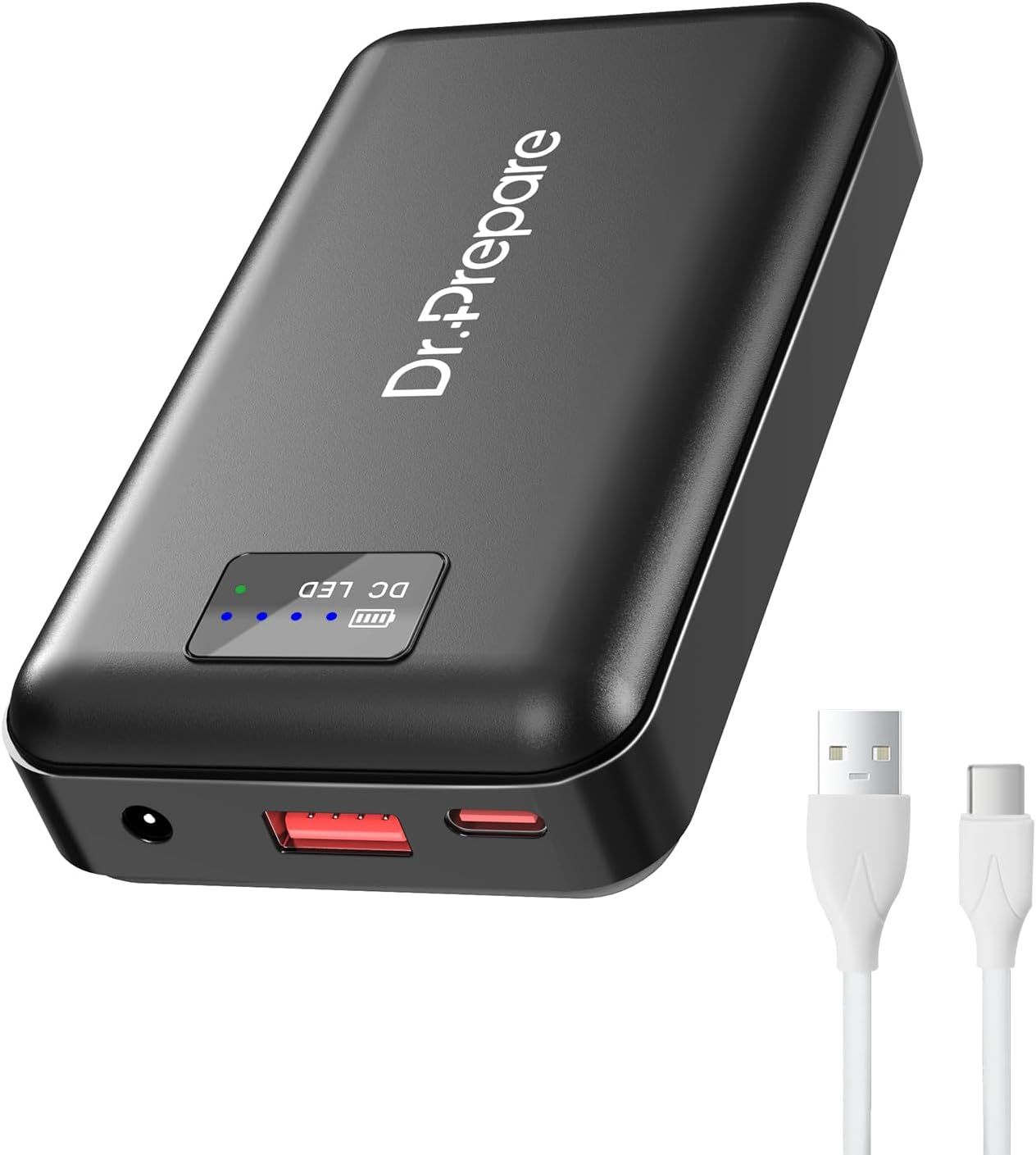DR.PREPARE Power Bank 16000 mAh, 7,4 V Batterie pour Gilet Chauffant, Batterie Externe à Charge Plus Rapide avec Sortie USB 5 V, Batterie Compacte Portable pour iphone et ipad, Ventilateur de Bureau