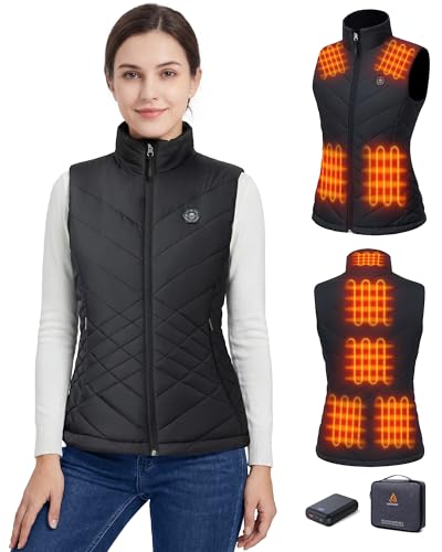 GOTOBI Gilet chauffant femme - 9 zones de chauffage, 3 températures - Batterie externe 16000 mAh pour activités de plein air