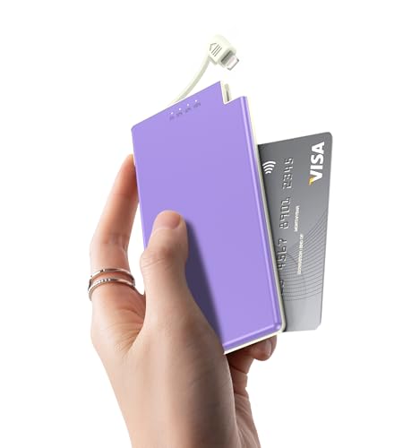 Auskang Batterie Externe 5000mAh, Câble iPhone intégré pour iPhone 14 et Anciens modèles, Pas pour USB-C, 6.8mm Powerbank Slim, Batterie Portable- Violet+Blanc