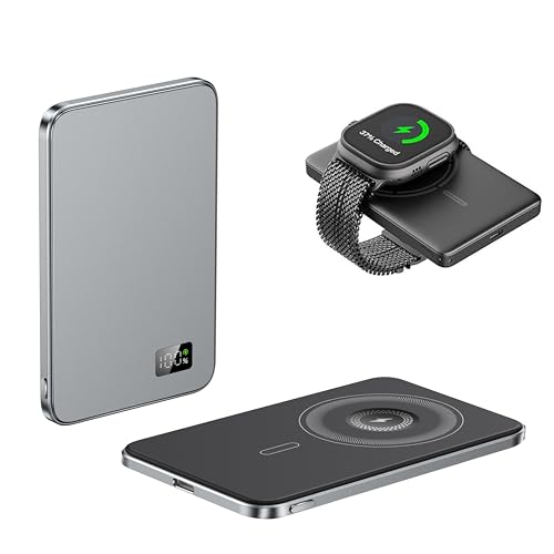 Kuulaa Batterie Externe Magsafe 5000mAh, Batterie Externe Induction Magnetique PD 20W, Power Bank Charge Rapide sans Fil Compatible avec iPhone 16/15/14/13/12 (GR)