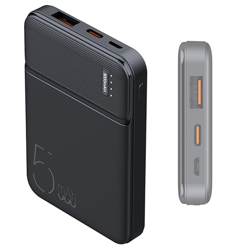 Mini Batterie Externe 5000mAh Ultra Compacte Power Bank de 2.4A Charge Rapide,Batterie de Secours Chargeur Portable Universel pour iPhone14 13 12 11 X 7 8 iPad Huawei Samsung (Noir)