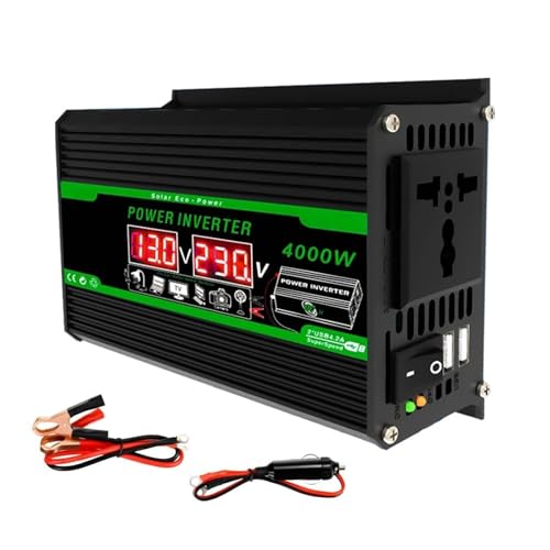 Inverter Onduleur Solaire 4000 W avec Double Écran LCD Numérique, Convertisseur DC 12 V vers AC 110 V 220 V, Batterie Externe Portable pour Camping-Car Convertisseur Tension(AC 220V)