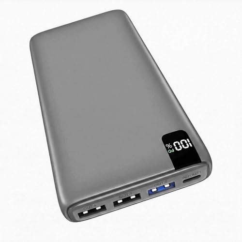 Batterie Externe 65W, Power Bank Charge Rapide Chargeur Portable Powerbank USB-C Input & Output avec 4 Ports, Affichage LED, Compatible avec iPhone 17 16 15 14 13 Samsung Galaxy MacBook iPad Pro etc