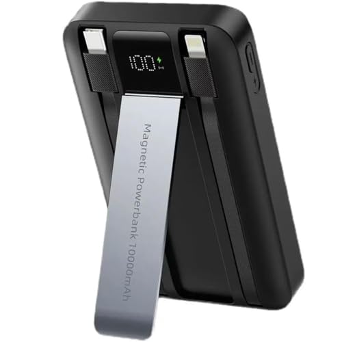 PORTENTUM Batterie Externe MagSafe Powerbank 5 en 1 avec Support Pliable – 10000 mAh câbles intégrés Lightning + USB-C – Charge Rapide 20 W PD/QC et sans Fil Qi 15 W – Compatible Chargeur Apple Watch