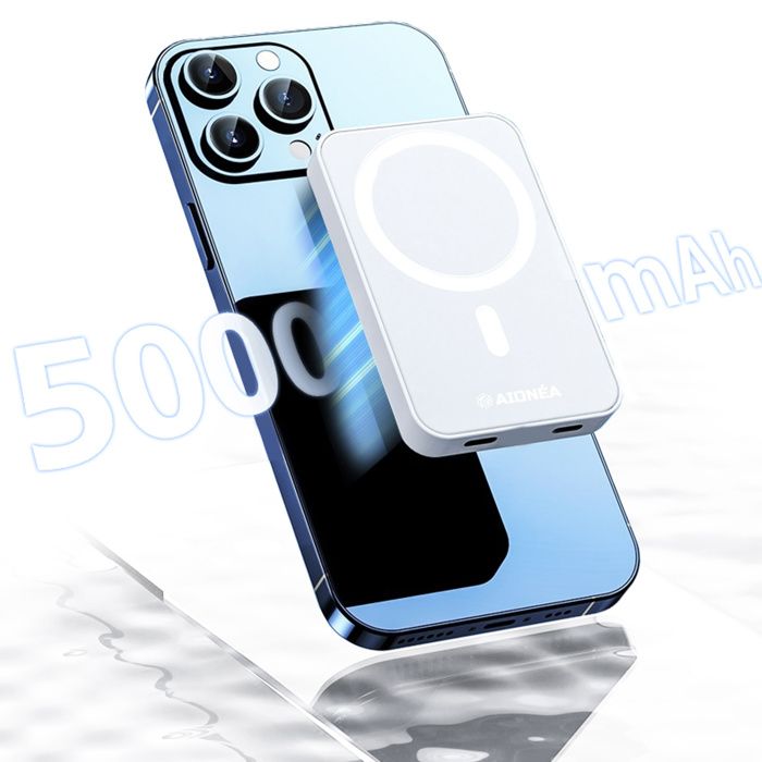 Batterie externe AIONÉA 5000mAh 11x6.5x1.1cm pratique Batterie externe magnétique Magsafe Batterie Externe Magnétique sans Fil