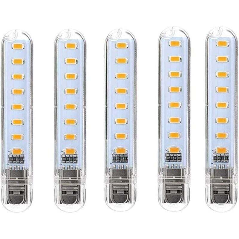 Lampe LED USB, LED Mini Portable USB Lampe, 5 Pièces Lumière De Clavier D'ordinateur, Pour PC, Ordinateur, Batterie Externe (Blanc froid) [Classe