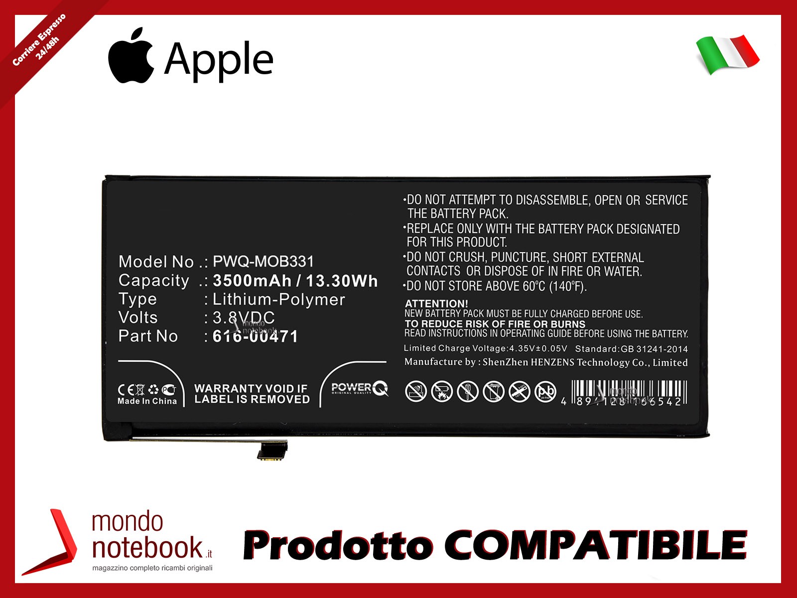 Batterie PowerQ Pour Apple IPhone Xr 3500mAh 3.8V P/N 616-00468 Haute Capacité