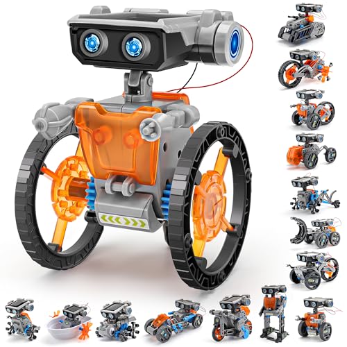 VEPOWER Robot Solaire, 15 in 1 Energie Solaire et Batterie Double DIY Cadeau, Robot Jouet Enfant STEM Jeux de Construiction pour Garçon Fille 8 9 10 11 12 13 Ans (212Pièces)