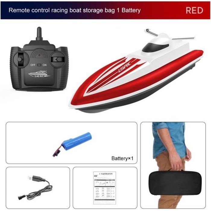 Bateau télécommandé 2.4G à grande vitesse bateau miniature électrique étanche rechargeable RC jouet pour enfant avec Batterie