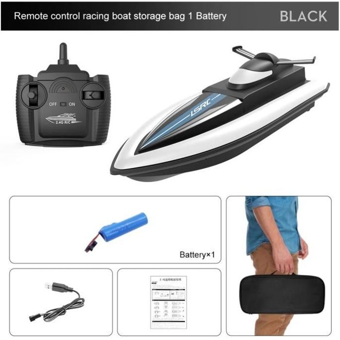 Bateau télécommandé 2.4G à grande vitesse bateau miniature électrique étanche rechargeable RC jouet pour enfant avec Batterie N