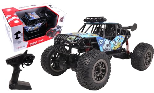 TURBO CHALLENGE - Turbo Titan - Off Road - 096623 - Voiture Télécommandée - Bleu - 1/8 - Prêt à Rouler - Batterie Rechargeable et Piles incluses - Métal - Jouet Enfant - Cadeau - À Partir de 6 Ans
