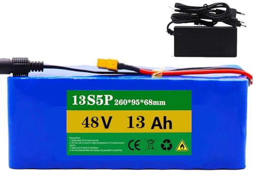 Batterie De Vélo Électrique 48V 13Ah Batterie Lithium-ION Rechargeable 48V pour Moteurs 250W, 350W, 500W, avec Chargeur, pour Vélo Électrique, Scooter Électrique Et Moto 48V 13Ah,XT60