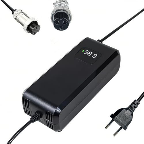 Chargeur Batterie 58.8V 4A, pour Batterie Lithium 52V 48V, avec Affichage LED et Multiples Fonctions de Protection et de réparation, équipé de connecteurs GX16 12mm