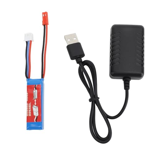 Batterie au Lithium de Voiture RC avec Chargeur 20C 7.4V 400mAh, Batterie au Lithium pour K969 K989 284161 284131 284010 1/28, Accessoires de Voiture télécommandés