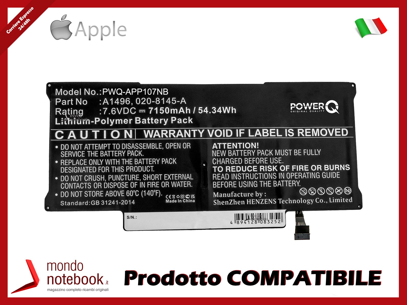 AccueilInformatiquePièce de rechange pour ordinateurBatteries d'ordinateur portableBatterie macbook air A1466