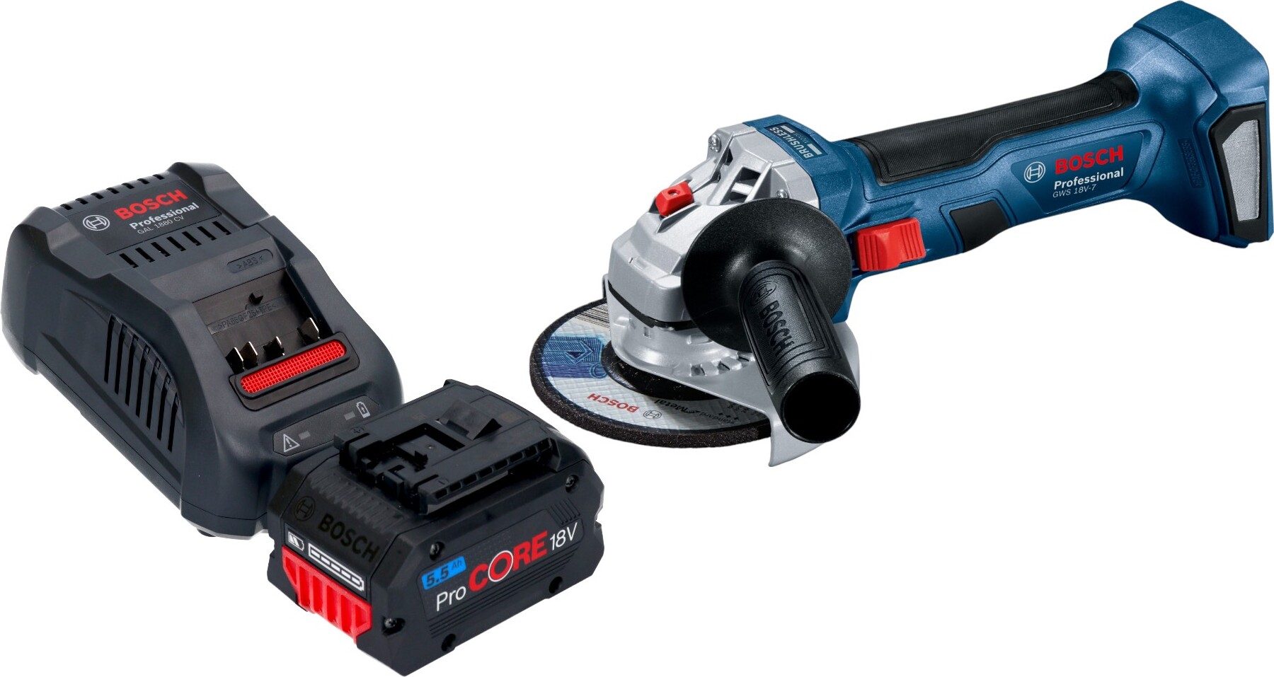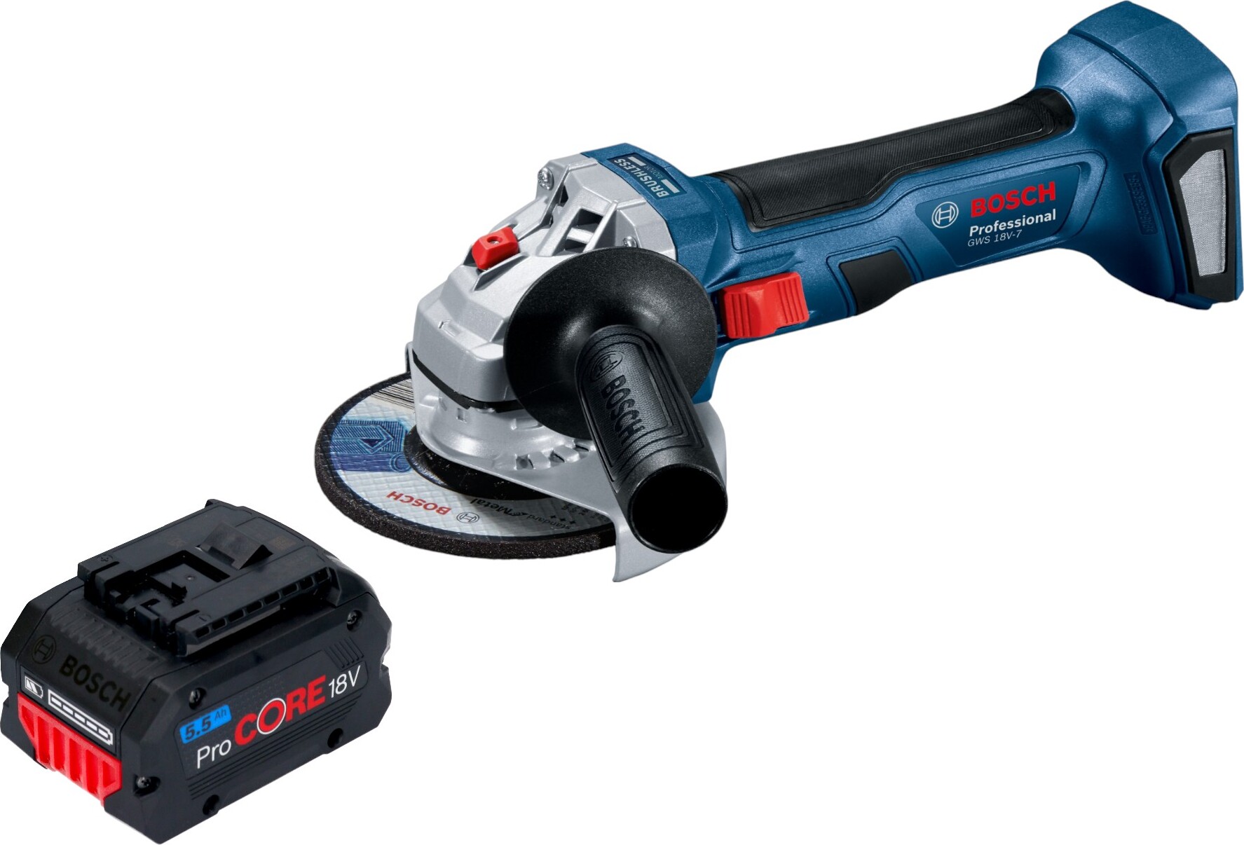 Bosch GWS 18V-7 Professional Meuleuse angulaire sans fil 18 V 115 mm Brushless + 1x batterie ProCORE 5,5 Ah + chargeur