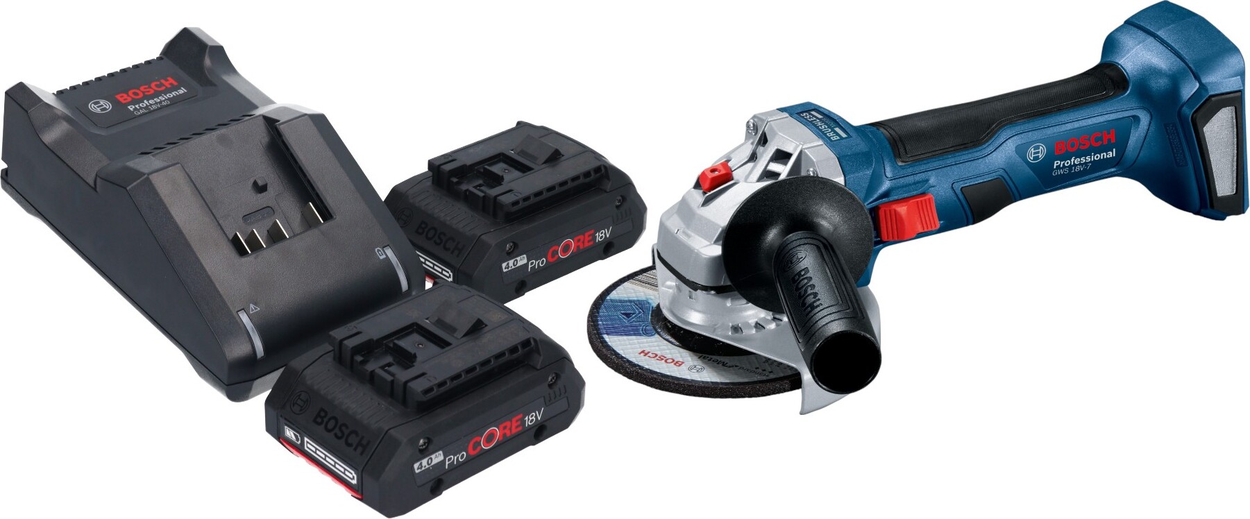 Bosch GWS 18V-7 Professional Meuleuse angulaire sans fil 18 V 115 mm Brushless + 2x batterie ProCORE 4,0 Ah + chargeur