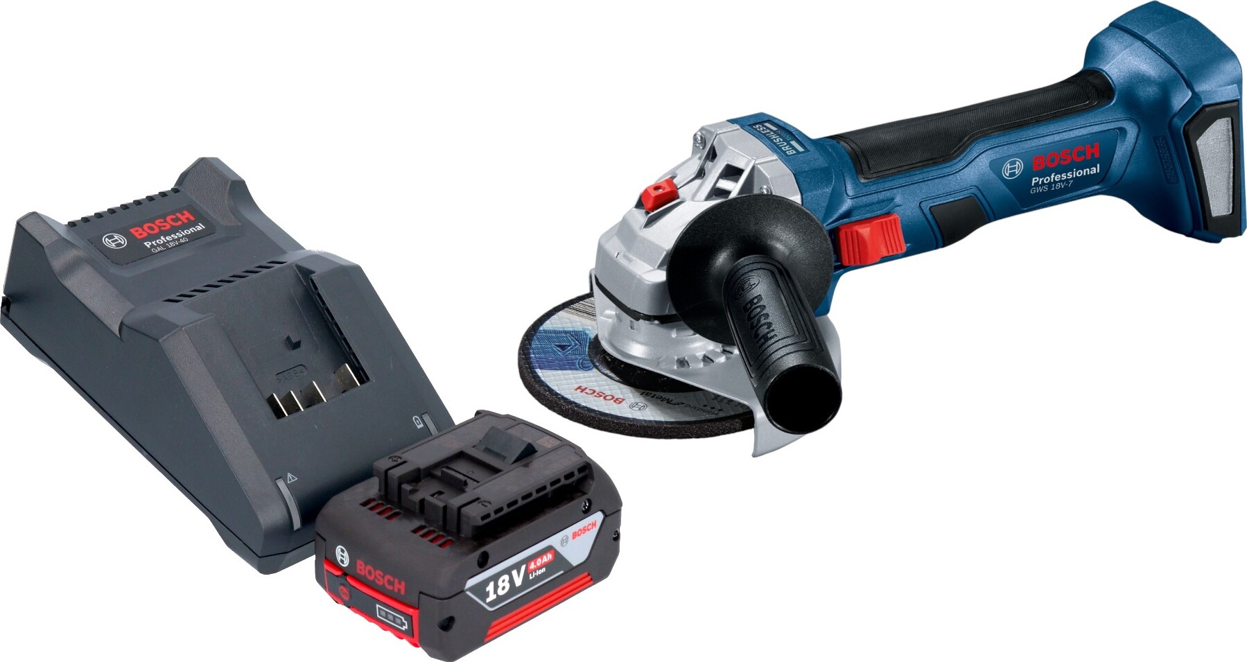 Bosch GWS 18V-7 Professional Meuleuse angulaire sans fil 18 V 115 mm Brushless + 1x batterie 4,0 Ah + chargeur
