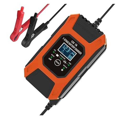 Chargeur Intelligent Entièrement Automatique 12V 7A 7 Étapes for Gel De Calcium Batterie Au Plomb Humide Réparation Moto Voiture Chargement Rapide Puissant(Yellow)