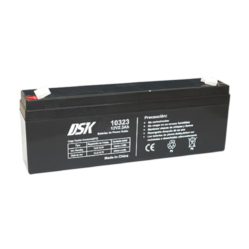 DSK 10323 - Batterie au plomb AGM rechargeable scellée 12V 2,3Ah. Idéal pour les voitures et les motos électriques pour enfants, scooters, systèmes UPS, systèmes de sécurité. Le gel ne se renverse pas